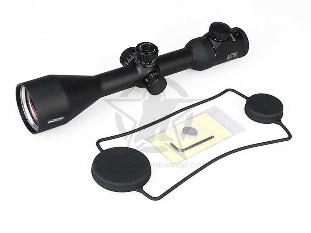 Magnificaiton : 3x-15x Adjustment Method: Side Focus Click Adjustment Value: 1 CLICK 1/4 MOA Objective Diameter(mm): 56 Tube Diameter(mm): 30mm Net Weight(Kg):0.72 Coating: Fully Multi-green Coated Optics