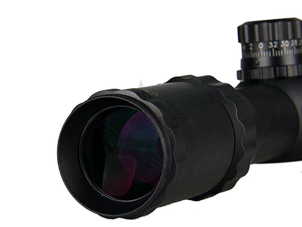 LT1.5-4X28L Magnification: 1.5X - 4X Objective Diameter: 28mm Tube Diameter: 30mm Field of View @ 100 yards: 85.0' - 24.0' Eye Relief: 5.0" - 4.0" Exit Pupil: 11.0mm - 6.0mm