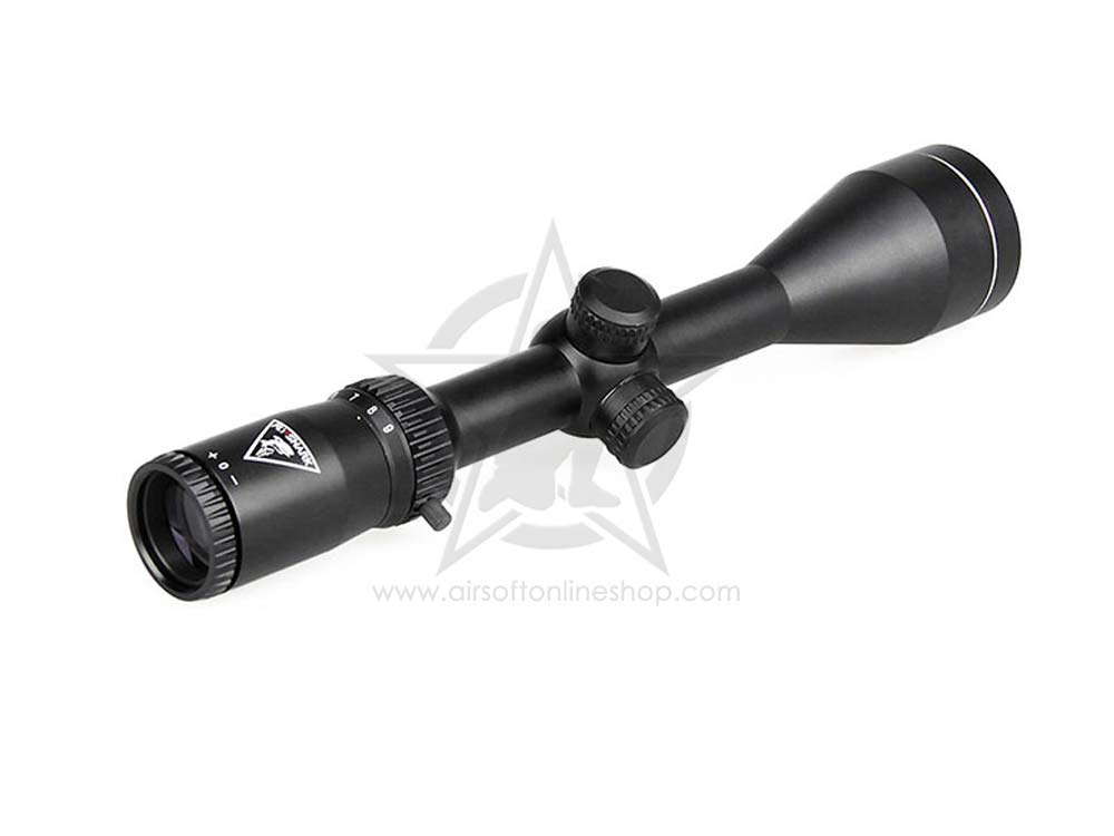 Type:Rifle Scope Magnification:3X-9X Objective Diameter(mm):50 Exit Pupil(mm):17low-5.6high Eye Relief:3.1-3.8in Click Value:1/4MOA Field Of View @100yds :30low-11high Tube Diameter(mm):25.4 Elevation Adjustment:50 MOA Windage Adjustment:50 MOA Finish:Matte Length(mm):315 Net Weight(g):460g
