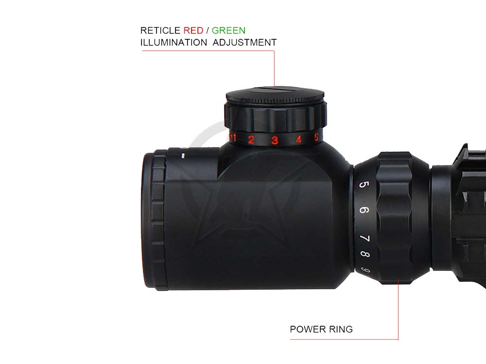 4-12X50EG rifle scope Magnification : 4x-12x Mian Body Diameter : 25.4mm MOA/Click : 1Click=1/4 Length : 328mm Weight : 635g