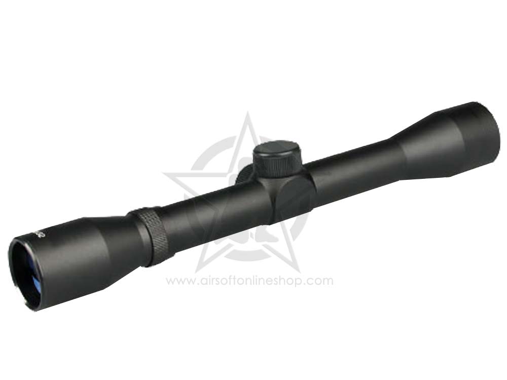 4X32 rifle scope Magnification : 4X Objective Diameter : 32mm Tube Diameter : 25.4mm Eye Relief : 80mm Length : 300mm