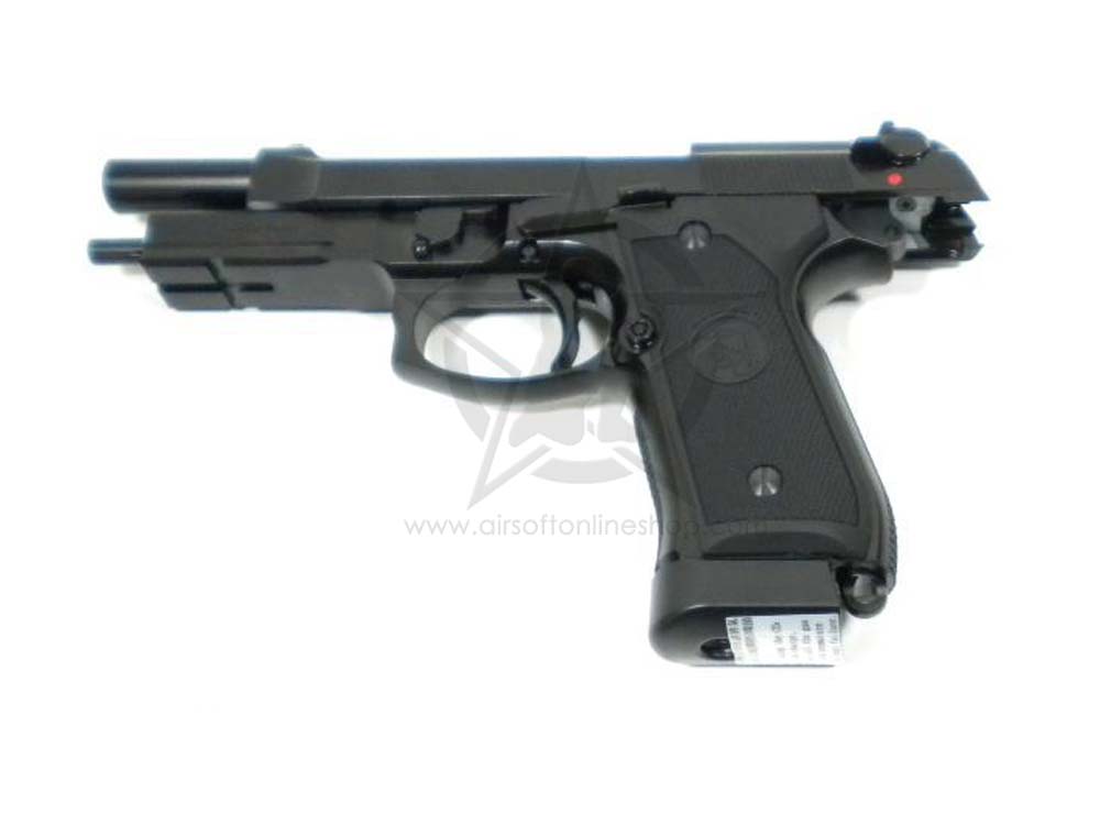 KJ Works M9A1 Full Metal Gas Airsoft Pistol Included: Allen wrench, sample package of airsoft BBs, BB speedloader & manual