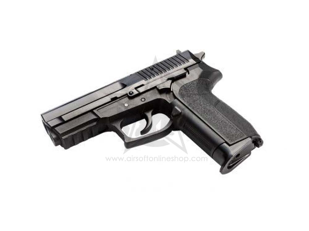 Features : KWC P226 Metal GBB Pistol (KC-47). 1:1 Ratio realistic gas blow back airsoft pistol. Full Metal Construction. Powerful CO2 offer 390 FPS out from the box (fits on 12g CO2 cartridge). Gas Blow Back Pistol with Semil Automatic Shooting Mode. Double action system. Extreme smooth slide cycling with clicks & clacks metal sound. One cartridge can shot more than 200 round bullets. 23+1 Rds Loading Capacity Magazine. The Slide hold Open / Lock functional when the Pistol fires empty. Equipped with 20mm lower rail for Flashlight or Laser Sight attachment . This gun can be strip-down like the real steel. Adjustable BAX HOP UP System. Notes: CO2 Cartridge is NOT included .