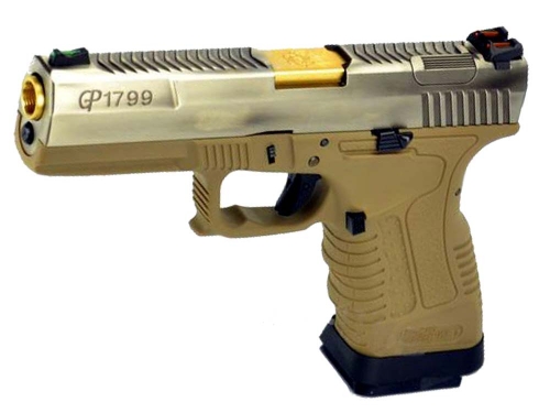 - Comes with Polymer Lower Frame with we marking, standard slide stop, large magazine catch, custom trigger set and magwell - Adjustable Hop up system - Included 24 rounds Gas Magazine with custom mag base
